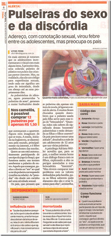 Artigo GazetaOnline 10/11/09 – Pulseiras do sexo: uma mania adolescente